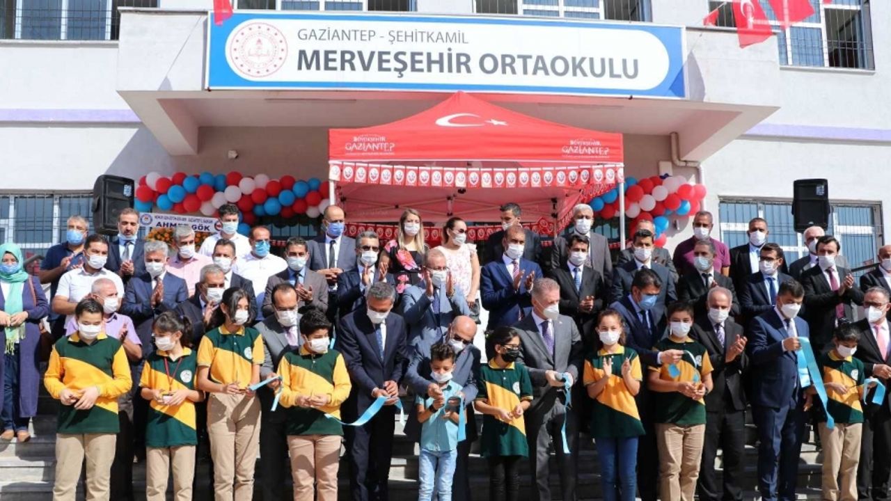 Gaziantep’te, hafta da bir okul açılışı gerçekleşiyor. Hayırseverler ve Devlet iş birliği ile yapılan okullar arasında bulunan Merveşehir Ortaokulu bugün düzenlenen törenle açıldı.