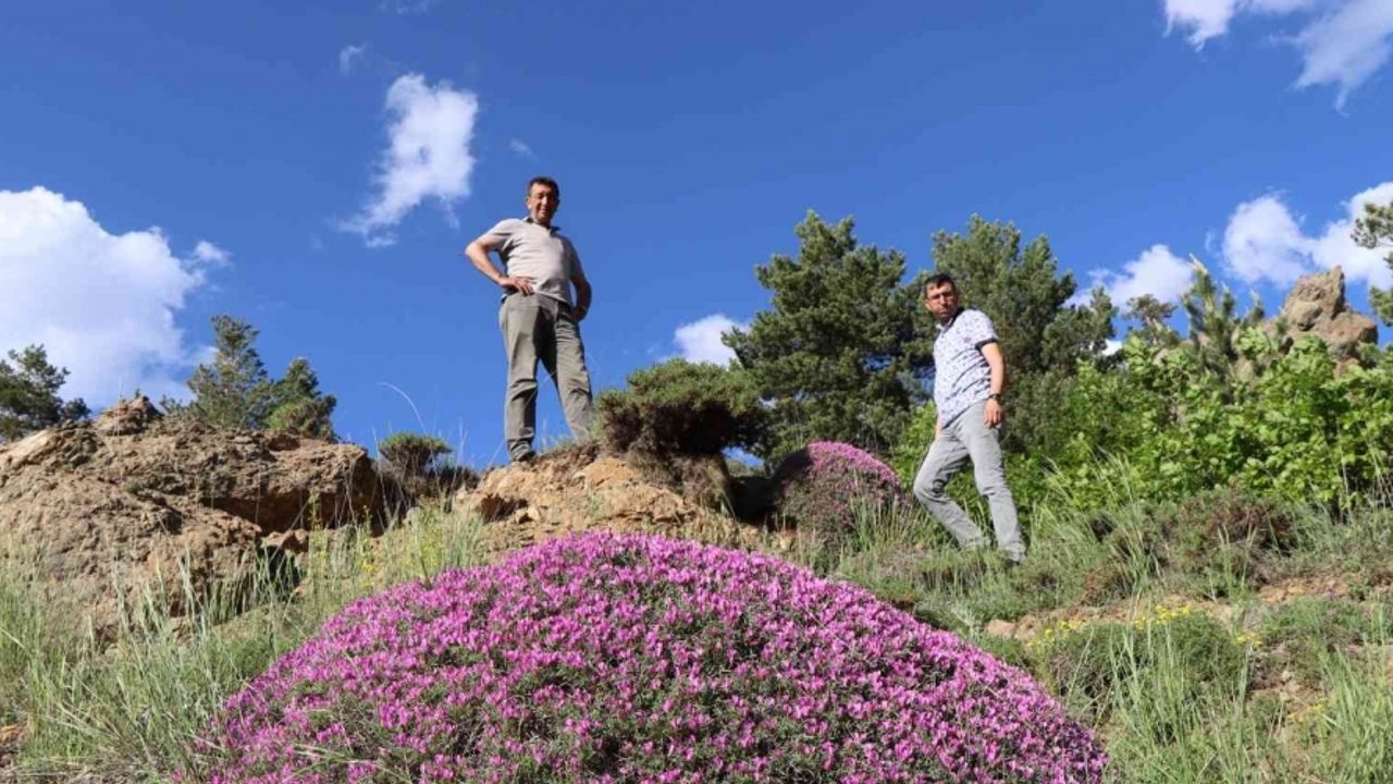 Erzurum’a bağlı Olur ilçesi Ormanağzı köyü Mükav mezrasında bulunan Gödek Dağı’nın etrafında mor çiçek açan gevenler kartpostallık görüntüler oluşturuyor.
