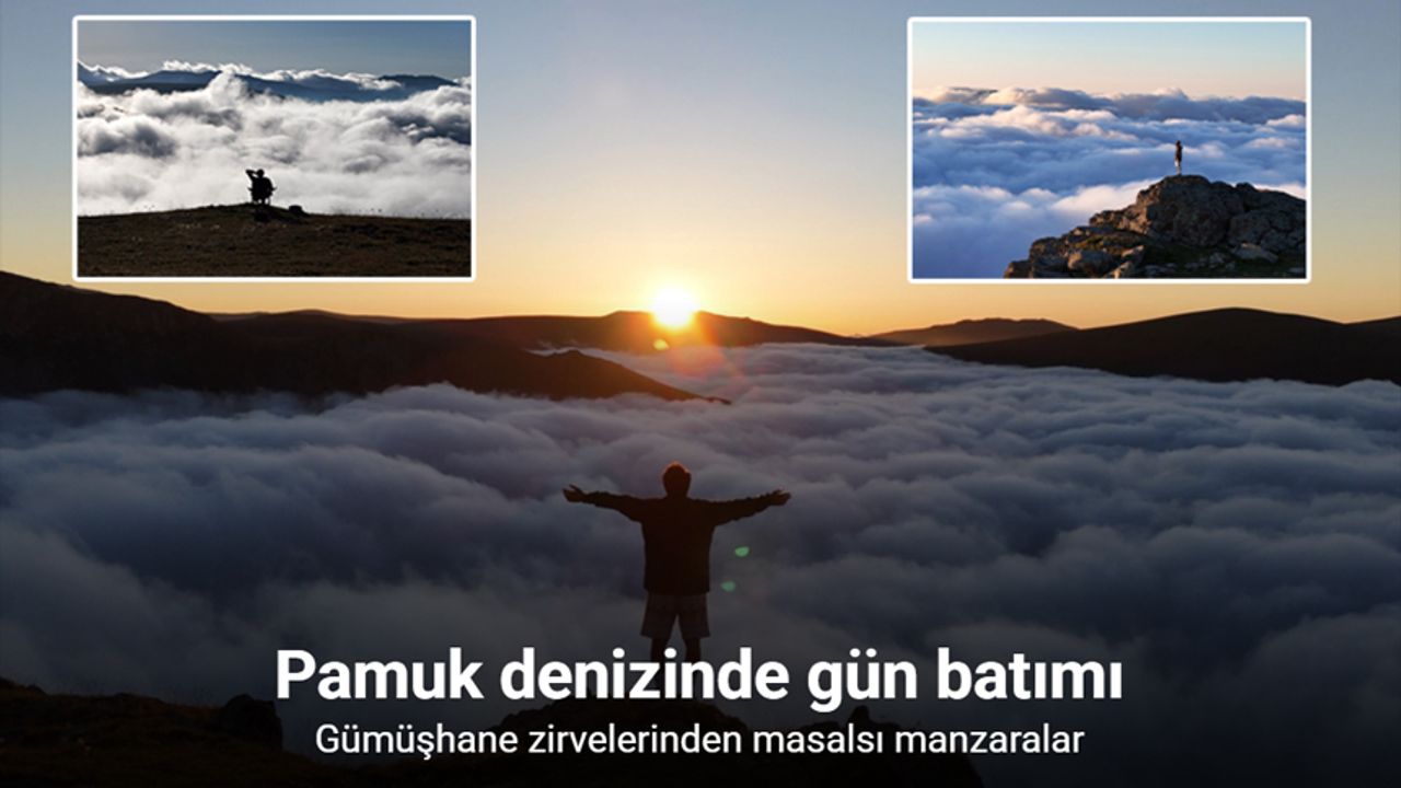 Havanın soğumasıyla vadileri dolduran bulutlar Ziyaretburnu Tepesinden bakıldığında adeta uçsuz bucaksız bir deniz görünümü sunarken gün batımında gökyüzünün kızıllığıyla bulutların beyazlığı birleşerek pamuk tarlalarını andıran kartpostallık görüntüler ortaya çıkardı. Fransa'da yaşayan ve sık sık memleketine gelerek şehrin doğa harikalarını kayıt altına alıp sosyal medya üzerinden paylaşan Gümüşhaneli Hüseyin Mutlu da arkadaşıyla birlikte o eşsiz anlara şahitlik etti.