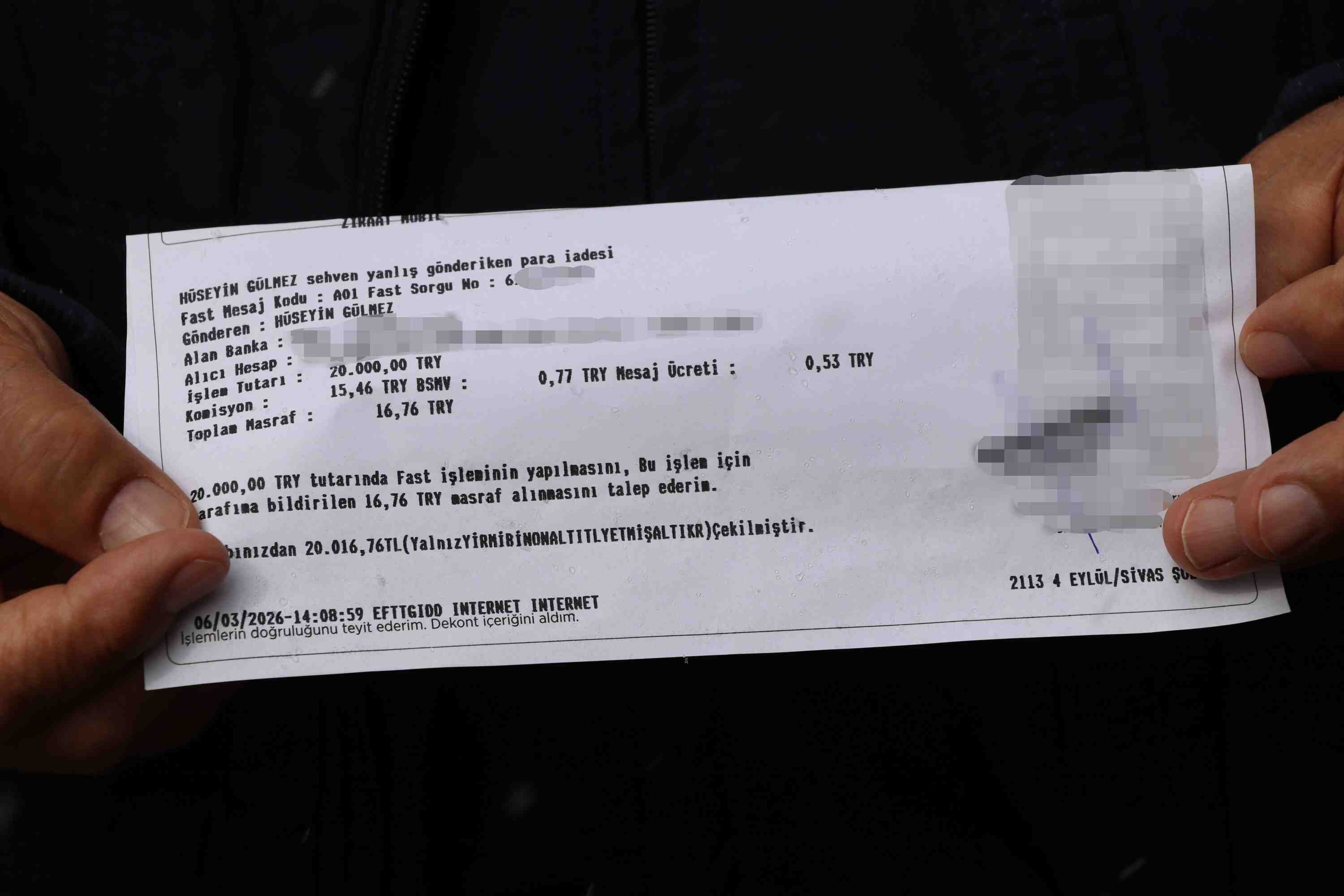 Sivas'ta yaşayan 68 yaşındaki Hüseyin Gülmez, banka hesabına gelen 20 bin TL'yi fark etmiş, sahibine ulaşmak istemişti. Cep telefonu üzerinden iade işlemini gerçekleştiremeyen Gülmez, banka şubesine giderek gelen parayı geri göndermişti. 68 yaşındaki Gülmez, duyarlı davranışının ardından talihsiz bir olay yaşadı. Umre yapmak üzere bir firmaya ödeme yapan Gülmez, dolandırıldı. Firma yetkilisinden haber alamayan ve 124 kişi ile birlikte dolandırılan Hüseyin Gülmez yaşadıklarını anlattı.
