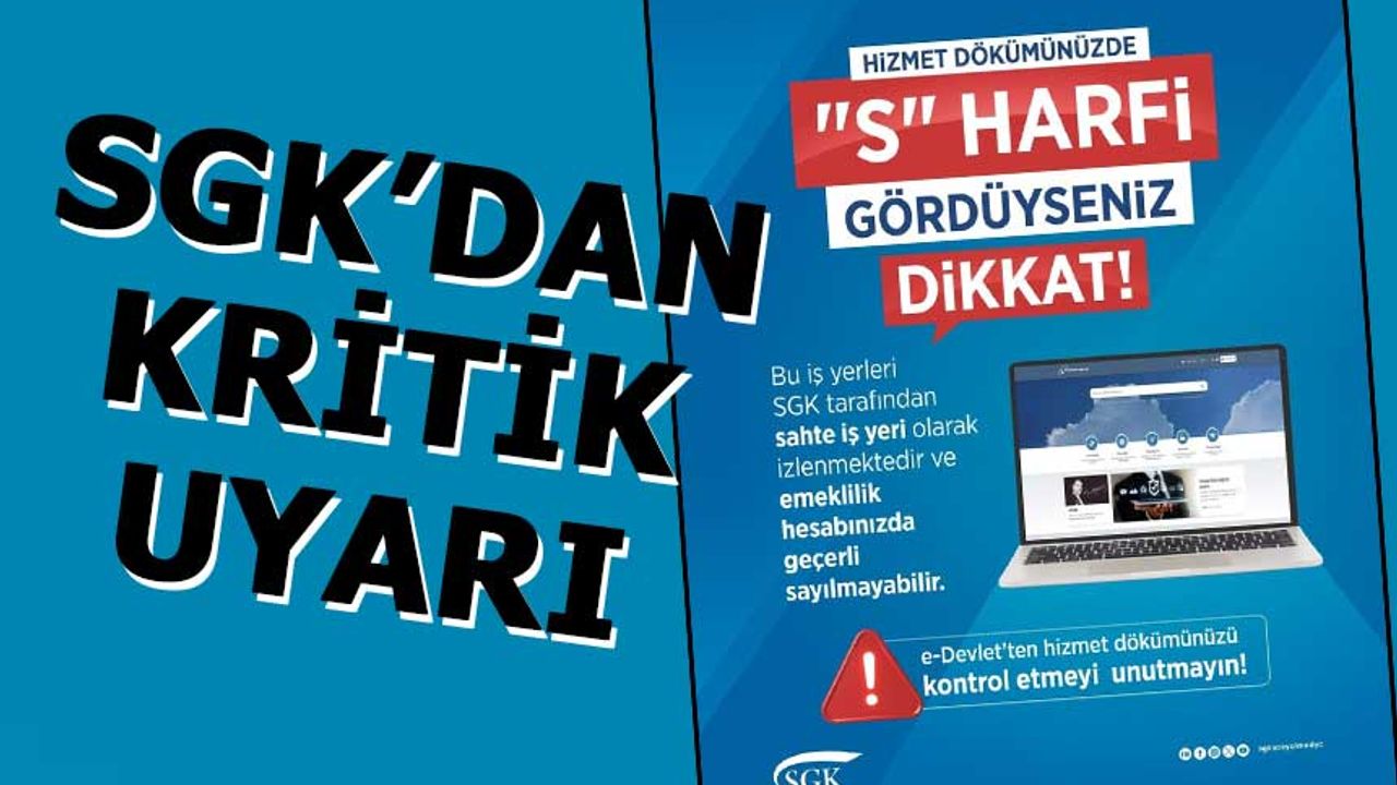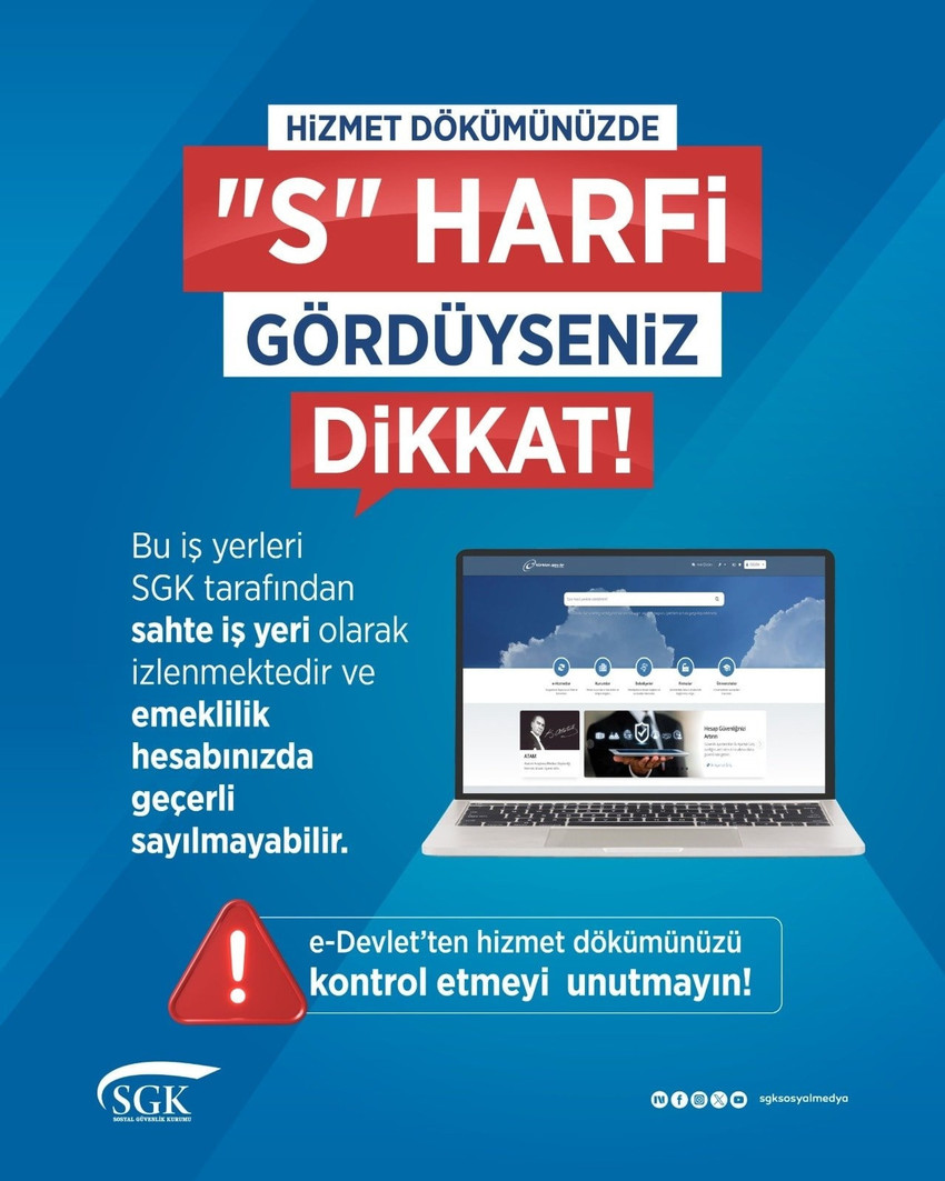 Kayıtlarında “S”, “Ş” veya “K” harfleri bulunan sigortalıların dikkatli olması ve gerekirse SGK müdürlüklerine başvurması öneriliyor.