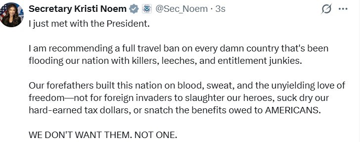 Noem, paylaşımında oldukça sert ifadeler kullandı ve şu sözlere yer verdi: