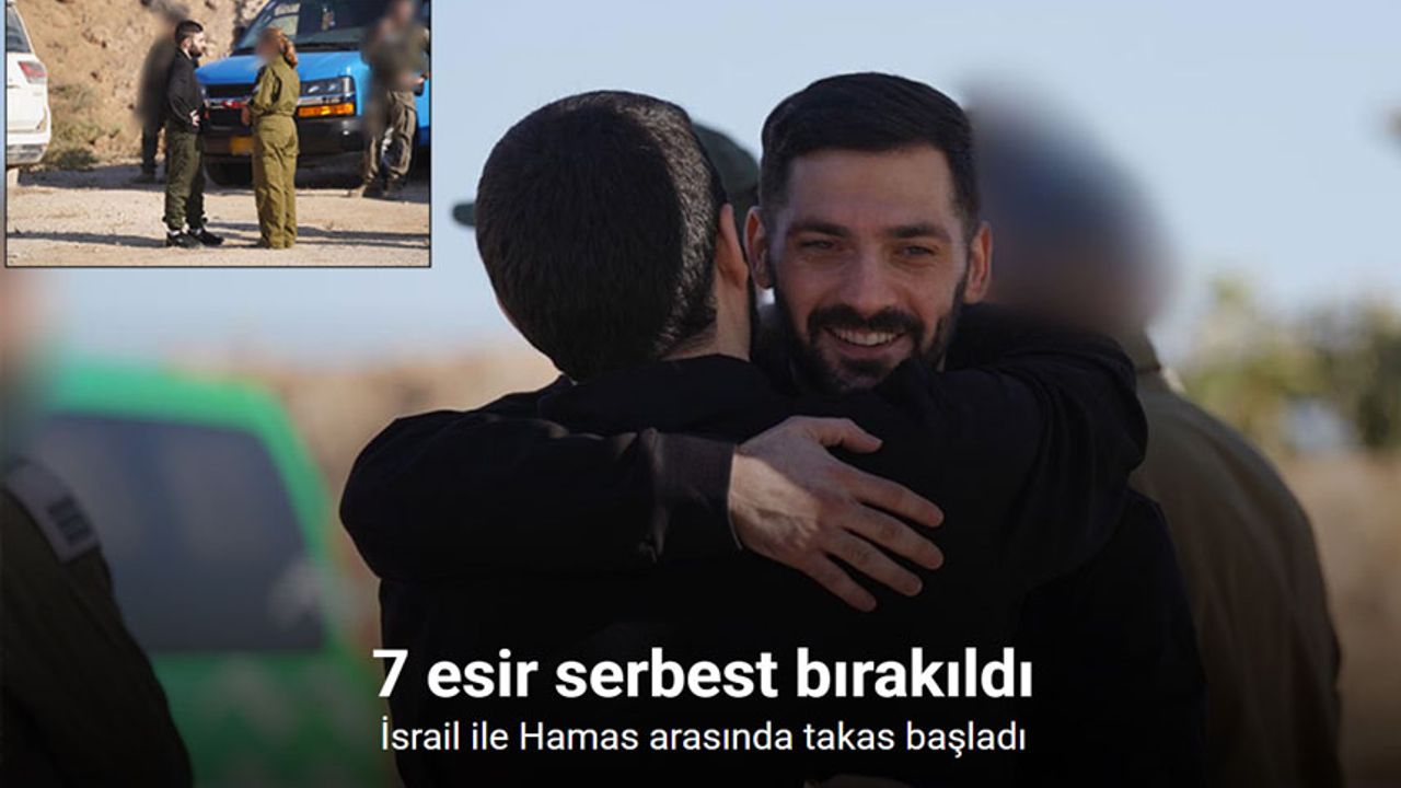 İsrail ile Hamas arasında anlaşmaya varılan ateşkes anlaşması kapsamında ilk esir takası yapıldı. İsrail ordusunun Uluslararası Kızılhaç Komitesi'nden (ICRC) Hamas'ın 7 esiri serbest bıraktığı bilgisini aldıklarını açıklamasının ardından İsrail Başbakanlık Ofisi de, Alon Ohel, Matan Angrest, Gali Berman, Ziv Berman, Guy Gilboa-Dalal, Eitan Mor ve Omri Miran'ın İsrail sınırına girdiklerini bildirdi.