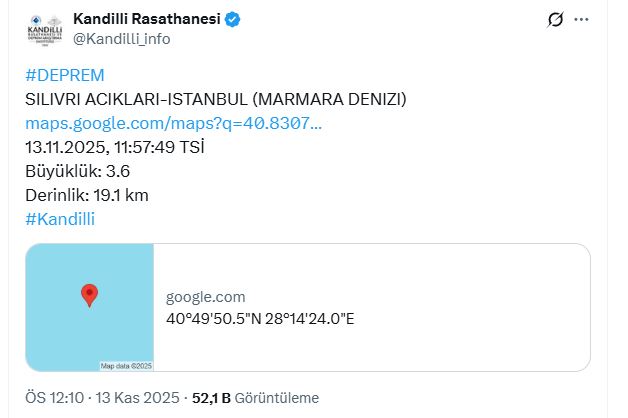 Depremin yerin yaklaşık 19,1 kilometre derinliğinde gerçekleştiği belirtilirken, İstanbul ve çevresinde hafif şekilde hissedildiği kaydedildi. Kandilli Rasathanesi, olası olumsuzluklara karşı bölgedeki sismik aktivitenin yakından takip edildiğini duyurdu.