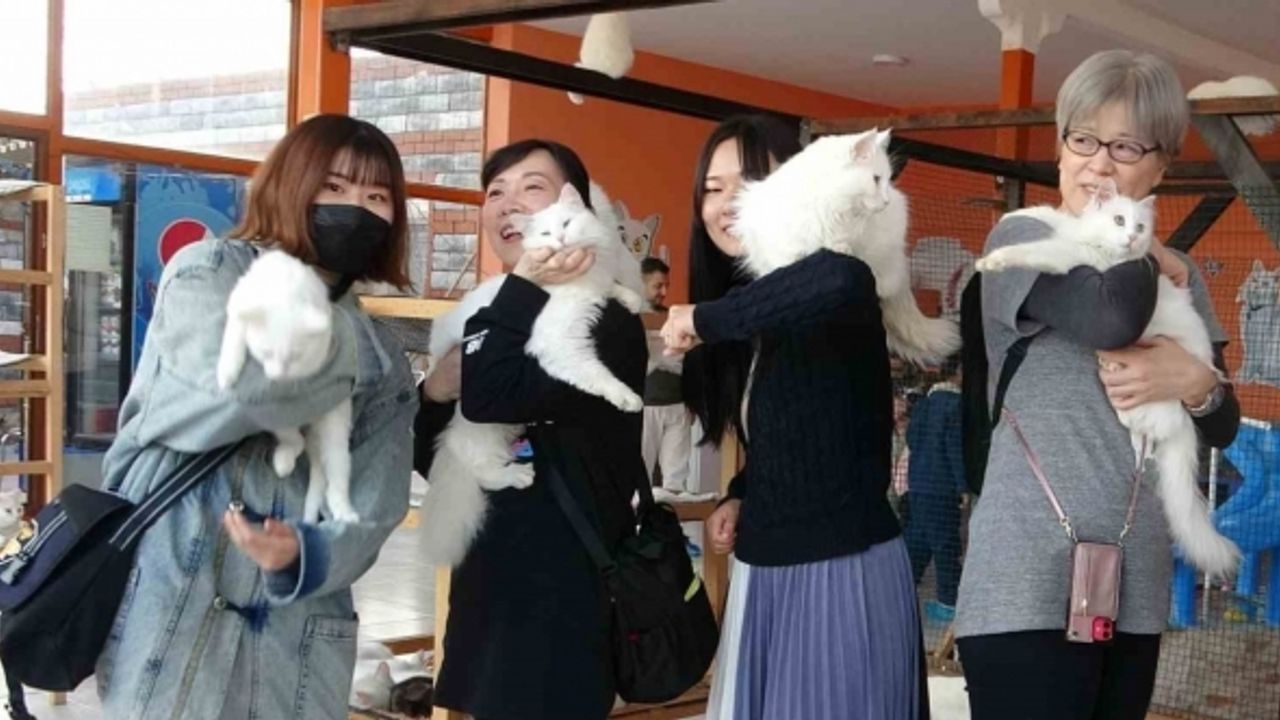 Japonya’nın Osaka şehrinden Van’a gelen Japon turistler, Van kedisine hayran kaldı.