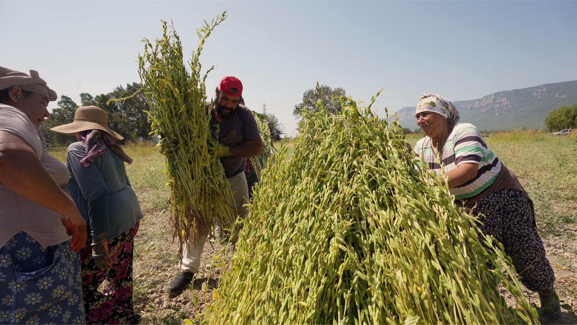 Gökova Körfezinden esen iyotlu rüzgar ile aroması daha da artan Gökova Susamında hasat sabah erken saatlerde başlıyor. Çalıştıracak işçi bulmakta zorlanan susam üreticileri, dönüşümlü olarak hasat yaparak ürün elde ediyor.