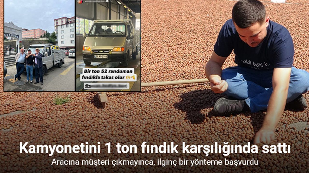 İlçede bir özel şirkette çalışan Kurt, ihtiyaç fazlası olan kamyonetini satışa çıkardığını anlatarak "Ailemizin 3 aracı vardı ancak evde 2 şoför var. Bu araçlarımızın, sigortasıydı, muayenesiydi bütçemize ağır gelmeye başlayınca birini satmak istedik. Bunun için sosyal medya hesabımdan 300 bin lira bedelle satış ilanı koydum. Ancak kimse nakit para olarak almak istemedi, almak isteyenler de çek ve senetle vadeli almak istedi. Ben de bu şekilde satmak istemedim. Daha sonra nakit alacak müşteri çıkmayınca fındıkla takas yapmak aklıma geldi ve bedel olarak 52 randıman esasına göre bir ton fındık karşılığında satış ilanı paylaştım.