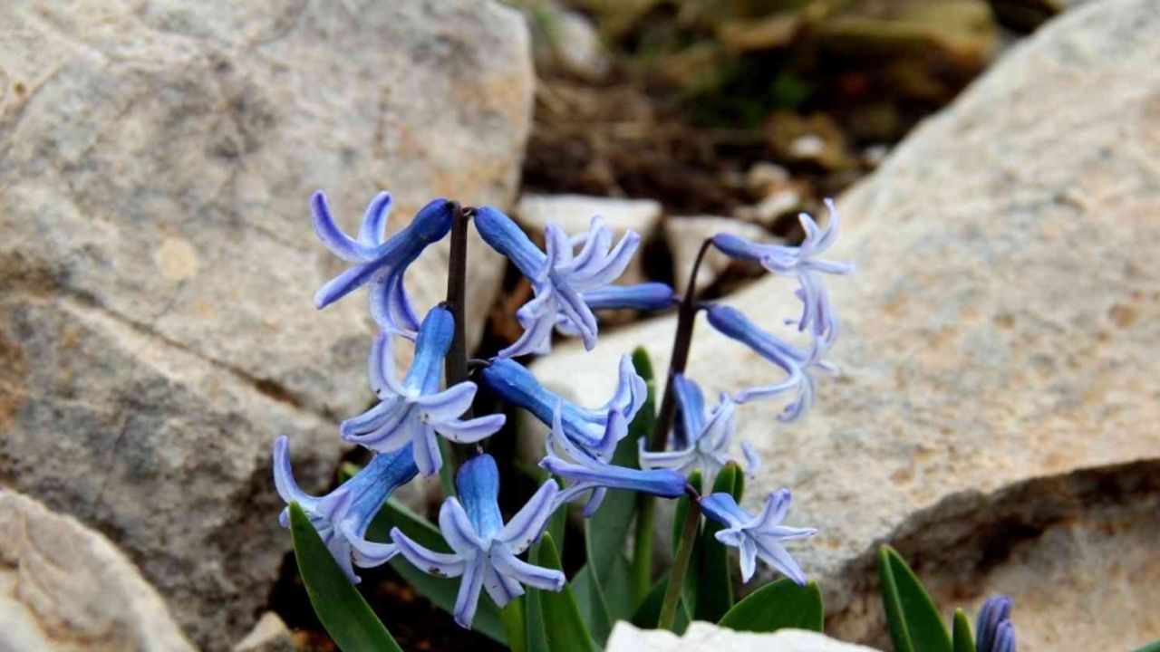 Kahramanmaraş’ın Afşin ilçesinde baharla birlikte çıkan koruma altındaki kaya sümbülleri görenleri hayran bırakıyor.