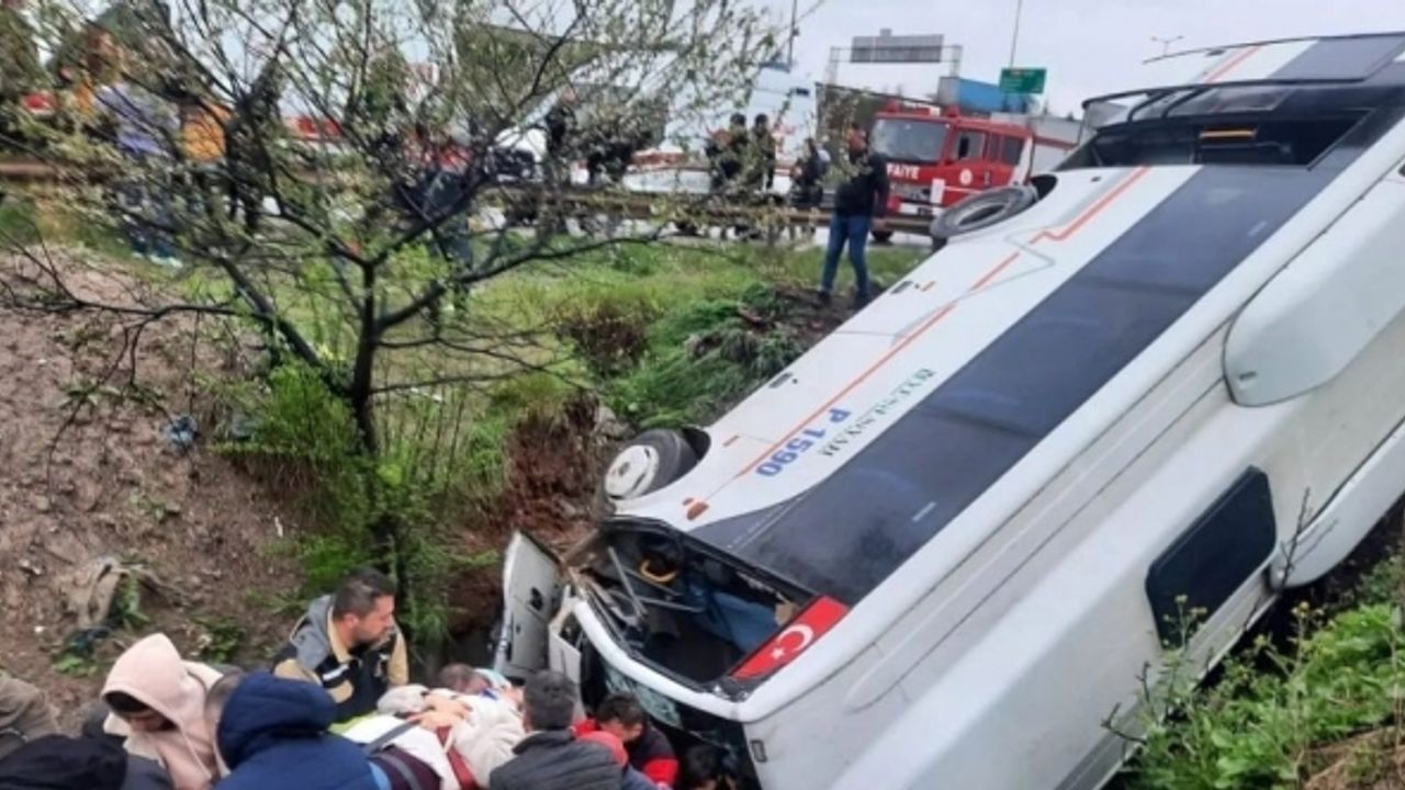 Kocaeli’nin Gebze ilçesinde şarampole uçan servis midibüsünde 8 işçi yaralandı.