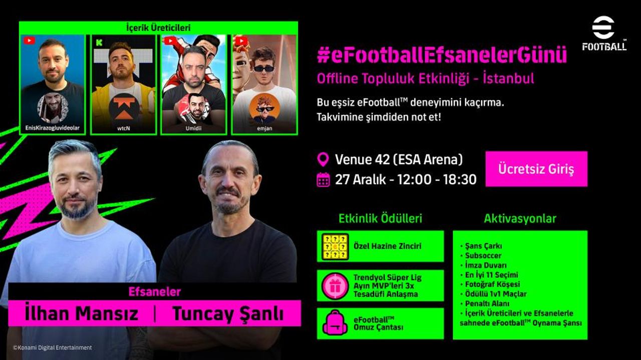 Türk futbolunun efsane isimleri İlhan Mansız ve Tuncay Şanlı'nın katılımıyla gerçekleşecek etkinlikte Enis Kirazoğlu, Ferit Karakaya, Ümit Tüney ve Emrecan Önal gibi popüler içerik üreticileri de yer alacak. Böylece oyunseverler, efsane futbolcular ve içerik üreticileri, yalnızca sanal sahalarda değil oyun dışında da ortak bir alanda bir araya gelme fırsatı yakalayacak. Oyunun yapımcısı Junichi Taya’nın da etkinlikte yer alacak olması, KONAMI'nin Türkiye pazarına ve topluluğuna olan bağlılığının bir göstergesi.