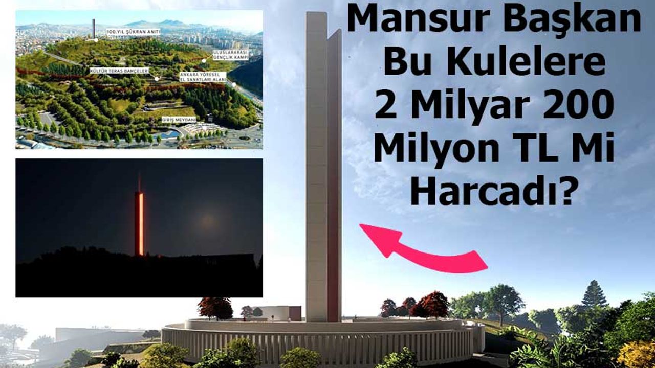 Gökçek, iki kule için harcanan miktarın, “Afet Riski Altındaki Alanların Dönüştürülmesi Kanunu” kapsamında yapılacak ihale yöntemleri dışında kullanıldığını vurguladı. “Bugün Ankaralıların cebinden çıkan parayla yapılan iki direğin her biri 1 milyar 100 milyon TL’ye mal oldu. Projenin adı ‘100. Yıl Şükran Anıtı’. Anıtkabir’e bakacak şekilde konumlandırılmış ama bu maliyetin Ankaralılara yükü oldukça yüksek” dedi.