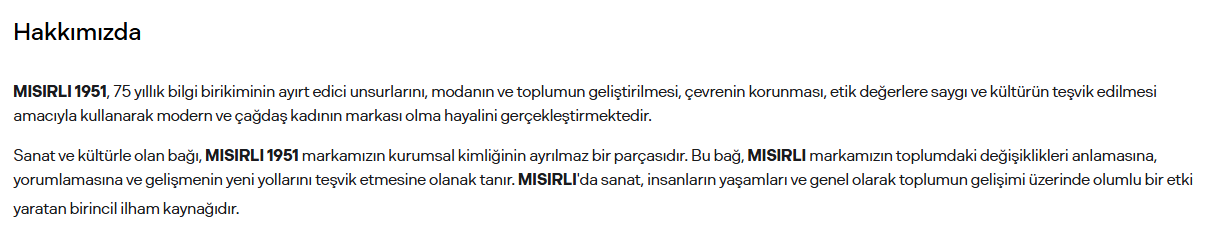 Markanın internet sitesinde kökeniyle ilgili iddialara da yer veriliyor. “Mükemmelliğin Tarihi: 1927’den beri Mısırlı” sloganı ve markanın 1927’de İstanbul’da kurulduğu vurgusu bulunuyor.