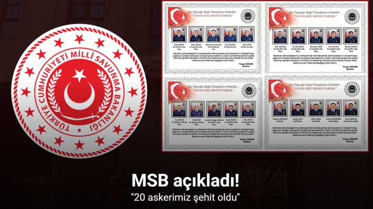 MSB, kazada şehit olan askerlerin isimlerini de paylaştı: