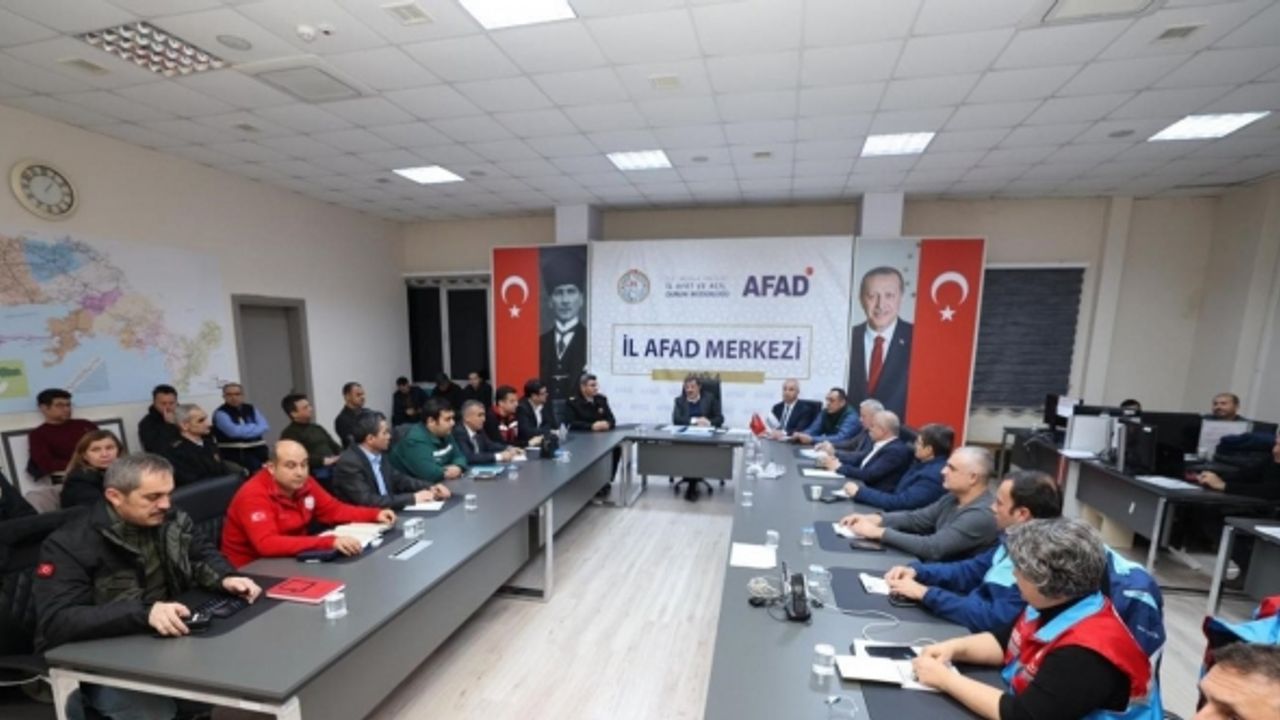 İl Afet ve Acil Durum (AFAD) Müdürlüğü Afet Koordinasyon Merkezi’nde gerçekleştirilen toplantıda Deprem Bölgesine sevk edilen Trayler çekici 10, Ekskavatör 11, Yükleyici 3,Kamyon 26, Umke aracı 18, Ambulans 42, Arama kurtarma aracı 3, DMA 3, Su tankeri ile Arasöz 19, Pikap ve binek 26, Otobüs 12, Yönetim aracı (orman) 1, İkram aracı 1, Karavan 3, Mobil baz istasyonu 3, kurtarma ekipleri, gönüllü ekipler ve depremzedelere ulaştırılacak yardımların sevk ve yönetimi değerlendirildi.