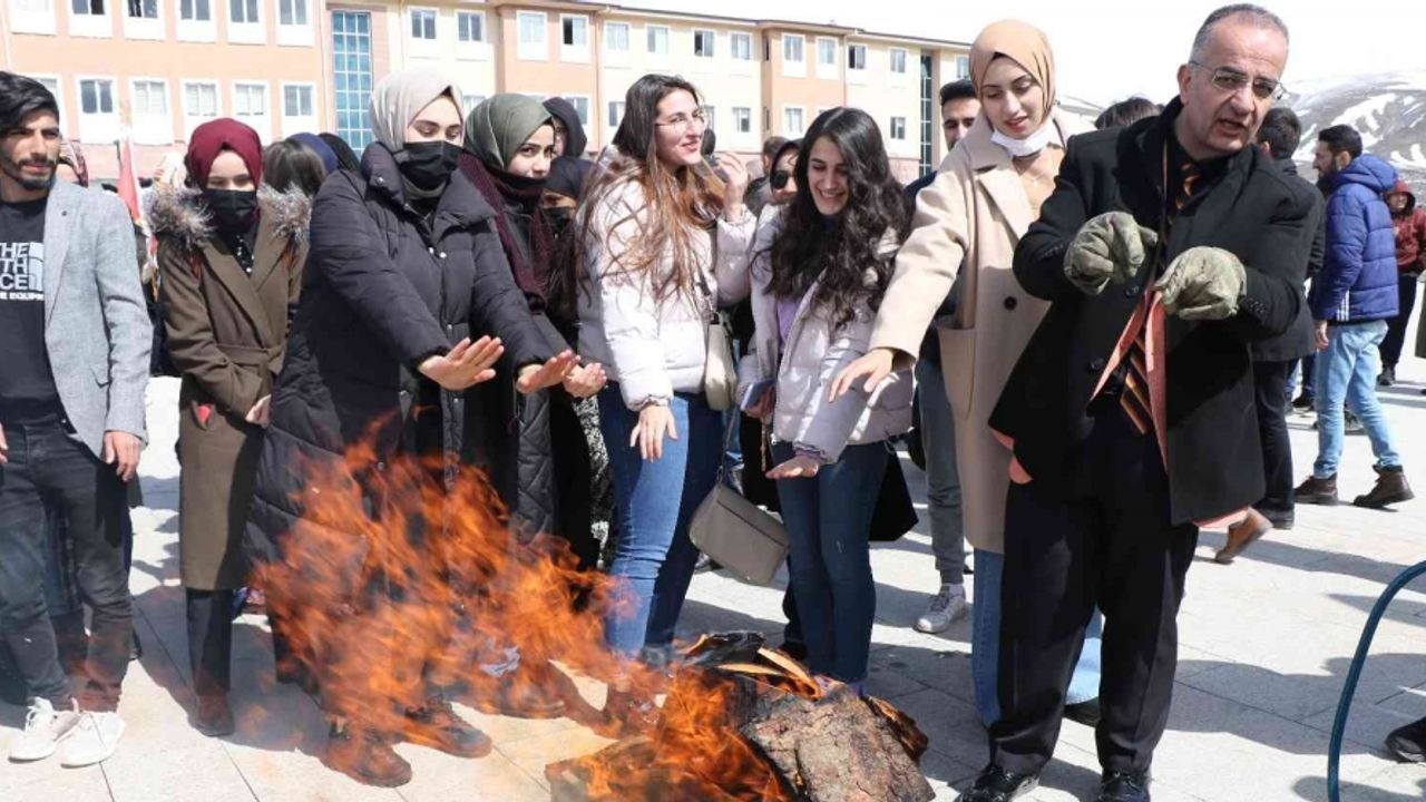 Baharın müjdecisi 21 Mart Nevruz Bayramı Erzincan’da soğuk hava altında bir dizi etkinlikle kutlandı. EBYÜ’de düzenlenen etkinlikte Nevruz ateşi için alana konulan odunların yaş olması nedeniyle pürümüzle alevlendirilmeye çalışılan ateş uzun süre yakılamadı. Daha sonra yanan cılız ateşin üzerinden birkaç protokol koruması ve öğrenci atlayış gerçekleştirdi.