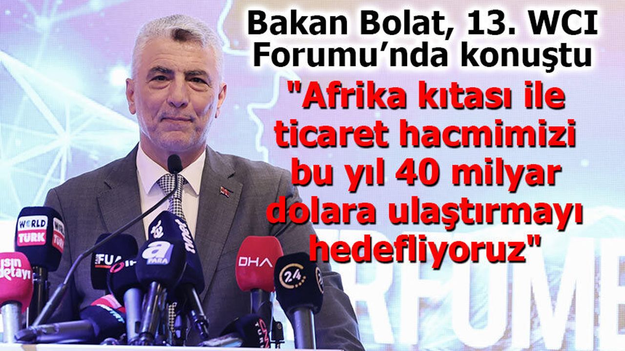 Bakan Bolat konuşmasını şöyle sürdürdü: ‘‘2003 yılında Türkiye ile tüm Afrika kıtası arasındaki ticaret toplam 5,4 milyar dolar iken 2024 yılında 7 kattan fazla bir artışla 36,5 milyar dolara ulaşmıştır. İnşallah bu yıl 40 milyar dolar sınırına ulaşmayı tahmin ediyoruz. İhracatımız 21,8 milyar dolara ulaştı. İthalatımız da yaklaşık 15 milyar dolara ulaştı. Afrika ülkelerinin birçoğunu ticaretin geliştirilmesi için hedef ülkeler listesine aldık. Türkiye olarak Afrika ile ticaretimizde makine ürünleri, elektrikli elektronik ürünler, plastik, kimyasal, otomotiv, tarım ürünleri ve demir çelik ürünleri gibi ana kalemlerde ticaret yapmaktayız. Artık Türk ürünleri Türk hizmet sektörü ürünleri Afrika'da da bütün dünyada teknolojinin kalitenin, markanın ve itibarın sembolü haline gelmişlerdir ve bütün dünya ülkelerindeki gibi Afrika'da hemen her ülkede Türk müteşebbislerini iş yaparken Türk yatırımcılarını yatırım yaparken görmekten büyük bir memnuniyet duyuyoruz."