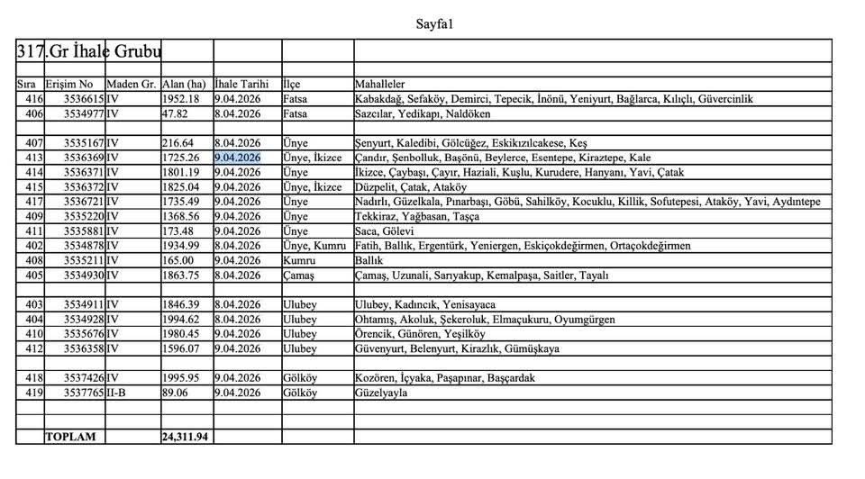 Ayrıca Kabadüz Çambaşı (Musakırık) bölgesinde ÇED onayı alınan bir saha bulunduğu, Piraziz’den Ordu sınırlarına uzanan iki ayrı alanın da gündemde olduğu belirtiliyor.