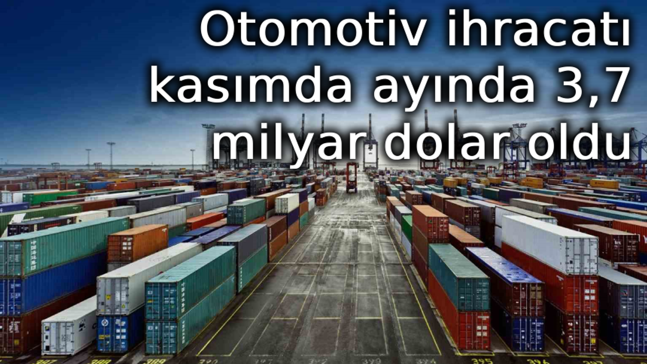 Türkiye ihracatının lider sektörü otomotiv endüstrisinin kasım ayı ihracatı geçen senenin aynı dönemine göre yüzde 16 artışla 3 milyar 752 milyon dolar oldu. Türkiye ihracatından aldığı pay yüzde 16,5 olan endüstri, yine birinci sırada yer aldı.