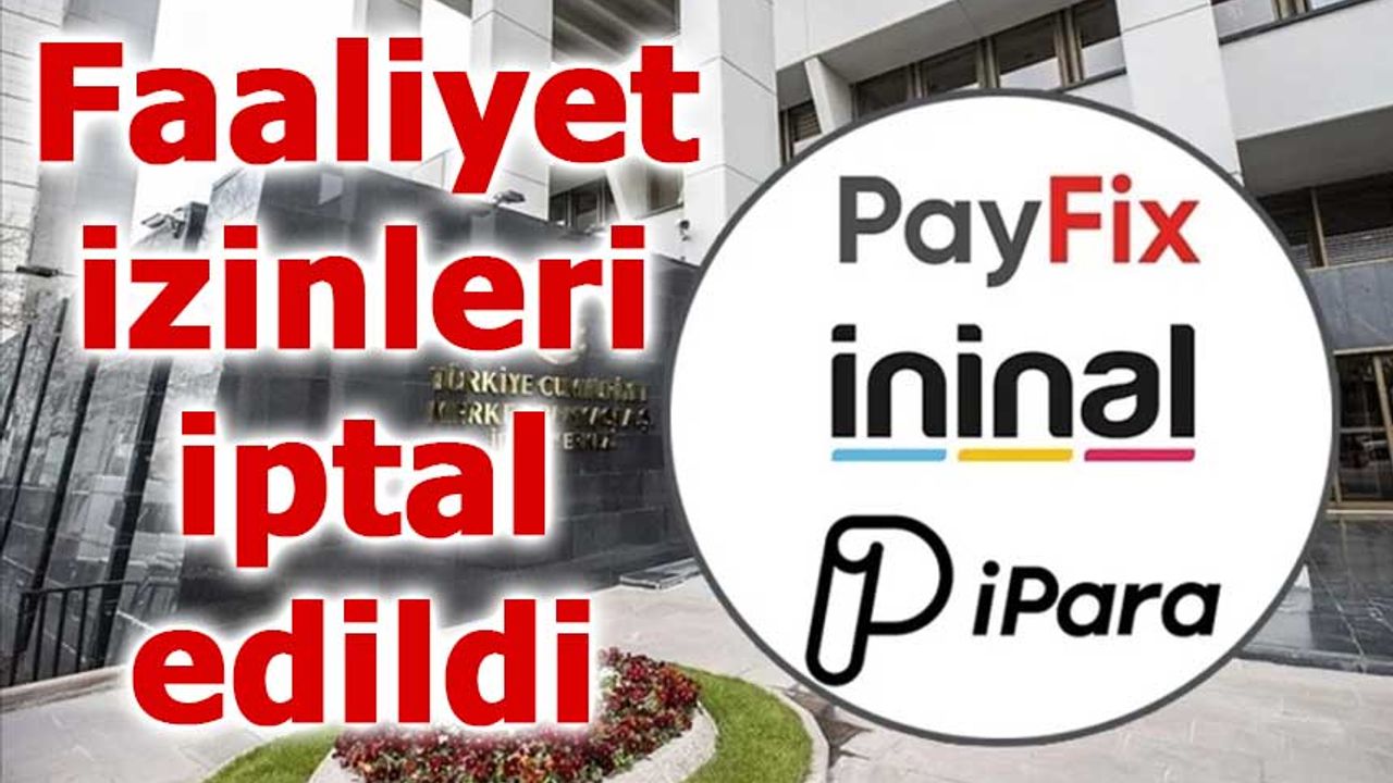 hakkındaki faaliyet izinleri TCMB tarafından iptal edildi. Kararda, iptal gerekçelerine ilişkin ayrıntılar yer almazken, söz konusu şirketlerin elektronik para ve ödeme hizmeti faaliyetlerini artık sürdüremeyeceği belirtildi.