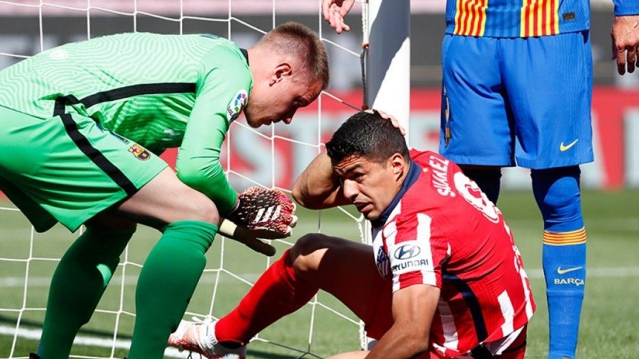 Barcelona kalecisi Ter Stegen ile hava topu mücadelesine giren Luis Suarez yerde kaldı. Ter Stegen, Suarez'e öfkeli bir şekilde "Luis!" diye bağırdı.