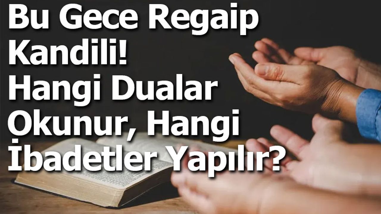 Diyanet İşleri Başkanlığı’na göre Regaip Kandili’nde yapılacak ibadetler belirli bir şekille sınırlı değil. Ancak bu mübarek gecenin şu ibadetlerle ihya edilmesi tavsiye ediliyor: