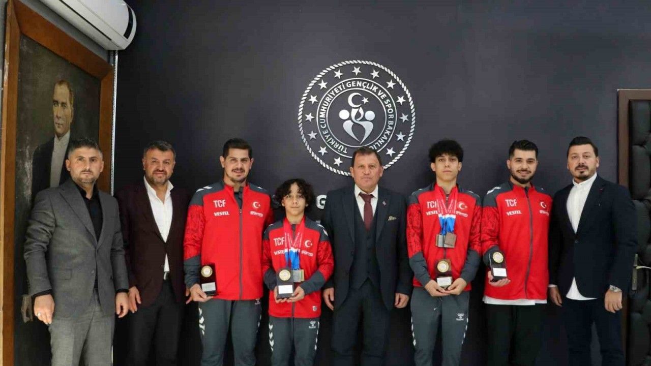 Artistik Cimnastik Balkan Şampiyonası’ndan madalyalarla dönen sporcular ve antrenörleri Kayseri Gençlik ev Spor İl Müdürü Ali İhsan Kabakcı’yı ziyaret etti.