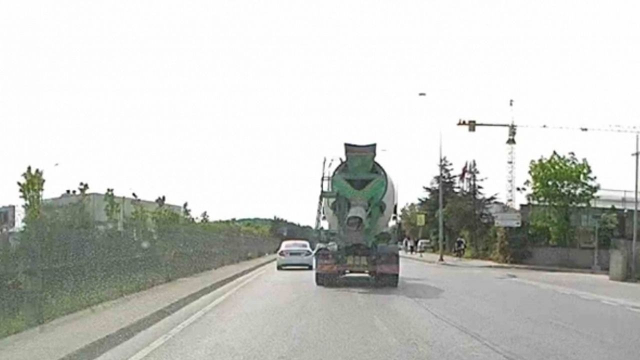 Sancaktepe’de TEM otoyolunun yan yolunda hızla ilerleyen beton mikseri adeta tehlike açtı. Yoldaki diğer otomobiller ile yarışırcasına hızlı ilerleyen beton mikseri art arda şerit değiştirdi. O anlar kameraya yansıdı.