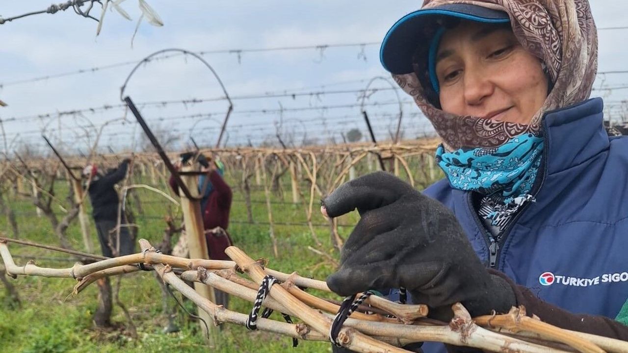 Türkiye’nin önemli üzüm üretim merkezlerinden biri olan Sarıgöl Ovası’nda kış aylarının sonuna yaklaşılırken bağlarda hareketlilik arttı. Bir yandan budama işlemleri gerçekleştirilirken, budaması tamamlanan alanlarda ise çubukların tellere bağlanması işlemi yapılıyor. Özellikle kadın işçilerin yoğun olarak görev aldığı bağlama çalışmalarında, kesilen çubuklar tek tek tellere sabitleniyor.