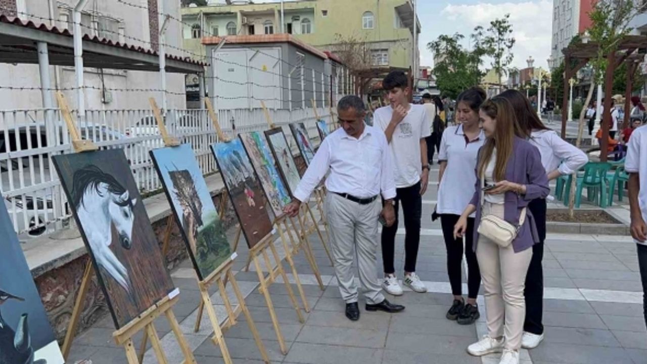 Silopi Senan İdin Fen Lisesi öğrencileri çevre kirliliğine dikkat çekmek amacıyla tuval üzerine akrilik ve yağlı boya tekniği ile çizdikleri resimleri Sanat Sokağı’nda sergiledi.
