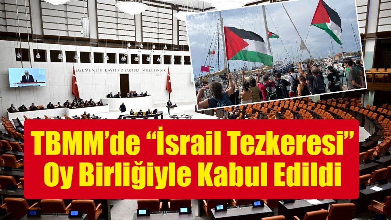 TBMM Genel Kurulu’nda İsrail’e yönelik TBMM Başkanı Numan Kurtulmuş’un tezkeresi okundu. TBMM Genel Kurulu’nda, "Küresel Sumud Filosu’na İsrail Ordusu Tarafından Yapılan Silahlı Müdahale" hakkında "Meclis Başkanlığı Tezkeresi" tüm partilerin ittifakı ve oy birliğiyle kabul edildi. Okunan tezkereye göre, "İsrail, uluslararası hukuku bir kez daha fütursuzca çiğneyerek, işlemekte olduğu soykırım ve savaş suçlarına bir yenisini eklemiş; sivil ve barışçıl bir teşebbüs olan Küresel Sumud Filosu’na uluslararası sularda saldırmıştır. Küresel Sumud Filosu’na silahlı müdahalede bulunan İsrail ordusu hem insani yardımları engellemiş hem de 20’si vatandaşımız toplam 175 Filistin dostu aktivisti alıkoymuştur. Söz konusu korsanlık eylemi açık bir savaş suçudur. İnsanlığın tüm tahammül sınırlarını aşan İsrail’i uyarıyor; zorla alıkonulan aktivistleri ve vatandaşlarımızı derhal serbest bırakmaya çağırıyoruz. Tüm siyasi partilerimiz ve milletvekillerimizle birlikte Türkiye Büyük Millet Meclisi olarak hukuksuz bir şekilde alıkonulan vatandaşlarımızın ve Gazze halkına insani yardım ulaştırmak için yola çıkan insanlık cephesinin tüm üyelerinin yanında olduğumuzu ifade ediyoruz. Ayrıca, başta vatandaşlarımız olmak üzere Küresel Sumud Filosu’nun mensuplarına karşı İsrail işgal güçlerince işlenen tüm suçların uluslararası mahkemelerde hesabının sorulmasının öncüsü ve ısrarlı takipçisi olacağız. İsrail’in Filistin halkına uyguladığı işgal, soykırım ve apartheid suçlarının son bulması, Gazze halkının kesintisiz ve kapsamlı insani yardıma erişmesi ve İsrail’in işlediği insanlık suçlarının hesabını vermesi için tüm parlamentolara, uluslararası parlamenter asamblelere ve uluslararası kuruluşlara birlikte tutum alma ve seslerini yükseltme çağrımızı yineliyoruz. Bu çerçevede, bu bildirinin oylanarak kabul edilmesi ve alınan kararın Resmî Gazete’de yayımlanması hususunu Genel Kurulun tasviplerine arz ederim."