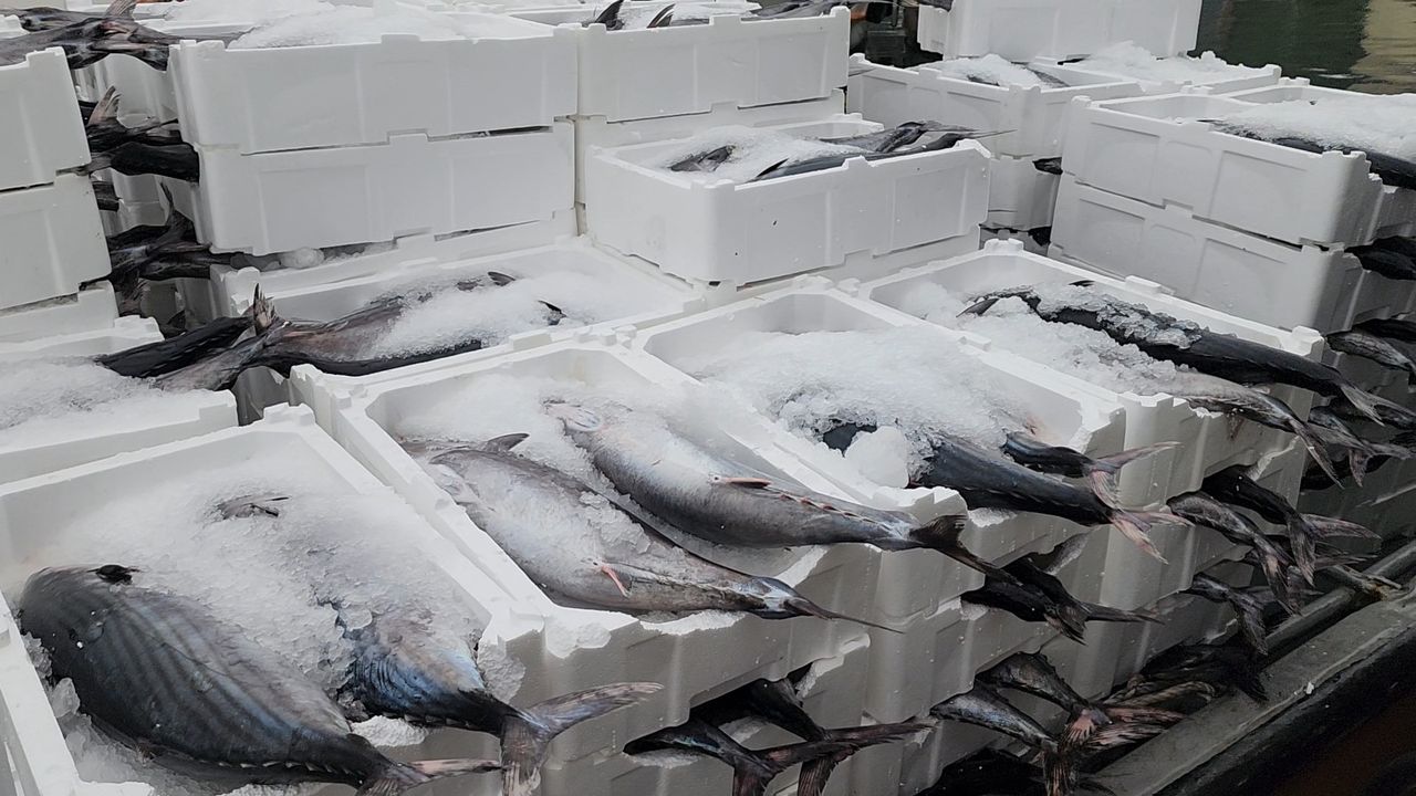 Ağlara takılan yüzlerce torik balığı teknelerde yoğunluk oluştururken, limana dönüşte ortaya çıkan 500 kasa dolusu av dikkat çekti. Yüksek yağ oranı ve güçlü aromasıyla sofralarda yoğun talep gören torik, av miktarının artmasıyla birlikte balık tezgahlarında hareketlilik oluşturdu. Torik balığının tanesi ise 2 bin 500 TL’den satışa sunuluyor.