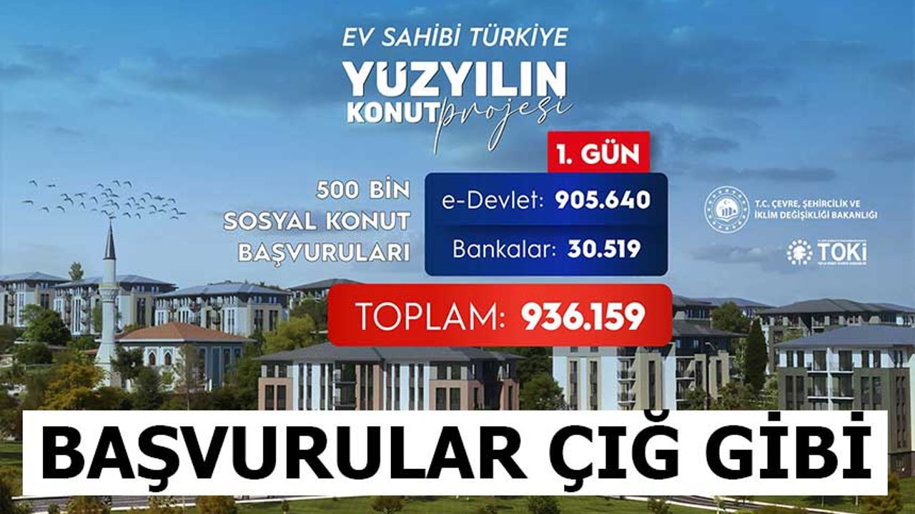 Çevre, Şehircilik ve İklim Değişikliği Bakanı Murat Kurum, Cumhuriyet tarihinin en büyük sosyal konut hamlesi olan **“Yüzyılın Konut Projesi”**ne ilk günde 936 bin 159 vatandaşın başvurduğunu açıkladı.
