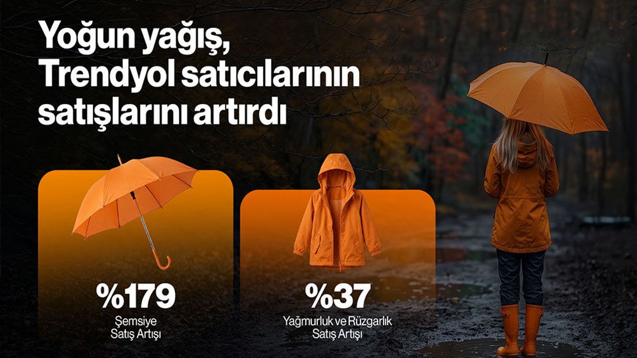 Trendyol verilerine göre; şemsiye, bot, yağmurluk ve rüzgarlık gibi hava koşullarıyla doğrudan ilişkili kategorilerde faaliyet gösteren satıcıların satış performanslarında, geçtiğimiz hafta sonundan itibaren ortalama yüzde 26 artış kaydedildi.