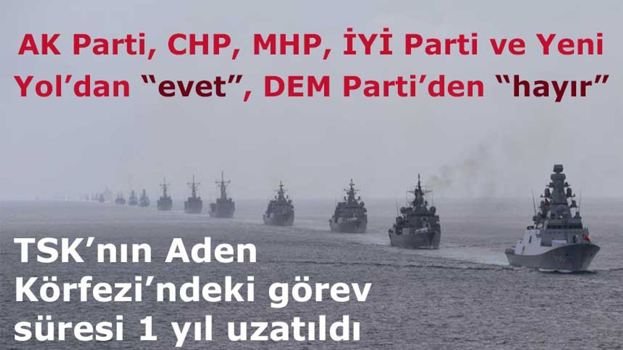 Cumhurbaşkanı Recep Tayyip Erdoğan’ın imzasını taşıyan tezkere; AK Parti, CHP, MHP, İYİ Parti ve Yeni Yol’un oylarıyla kabul edilirken, DEM Parti “hayır” oyu verdi.