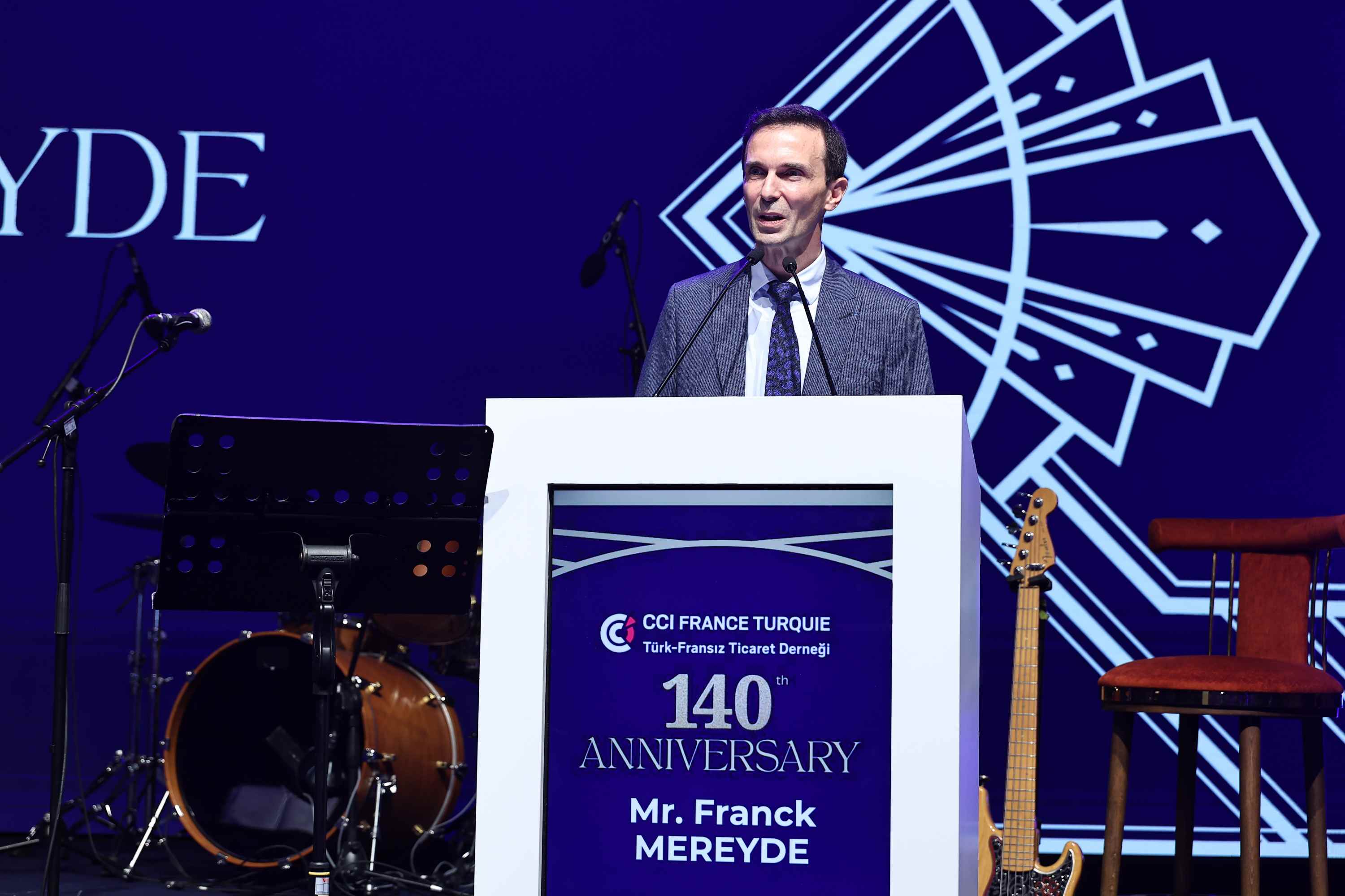 Gala gecesinde konuşan Türk-Fransız Ticaret Derneği Başkanı ve TAV Havalimanları İcradan Sorumlu Yönetim Kurulu Üyesi Franck Mereyde, Fransız firmalarının Türkiye’de köklü bir geçmişe sahip olduğunu belirterek, bugün ülkede faaliyet gösteren Fransız ve Türk-Fransız ortaklıklı şirketlerin yaklaşık 400 bin doğrudan ve dolaylı istihdam sağladığını kaydetti. Mereyde, “Bu durum, Türkiye’ye ve Türkiye'nin geleceğine duyulan güveni açıkça göstermektedir. 2020–2024 yılları arasında toplam 4 milyar avro yatırım yapan bu firmalar, önümüzdeki üç yıl içinde 5 milyar avro daha yatırım yapmayı planlamaktadır” ifadelerini kullandı.