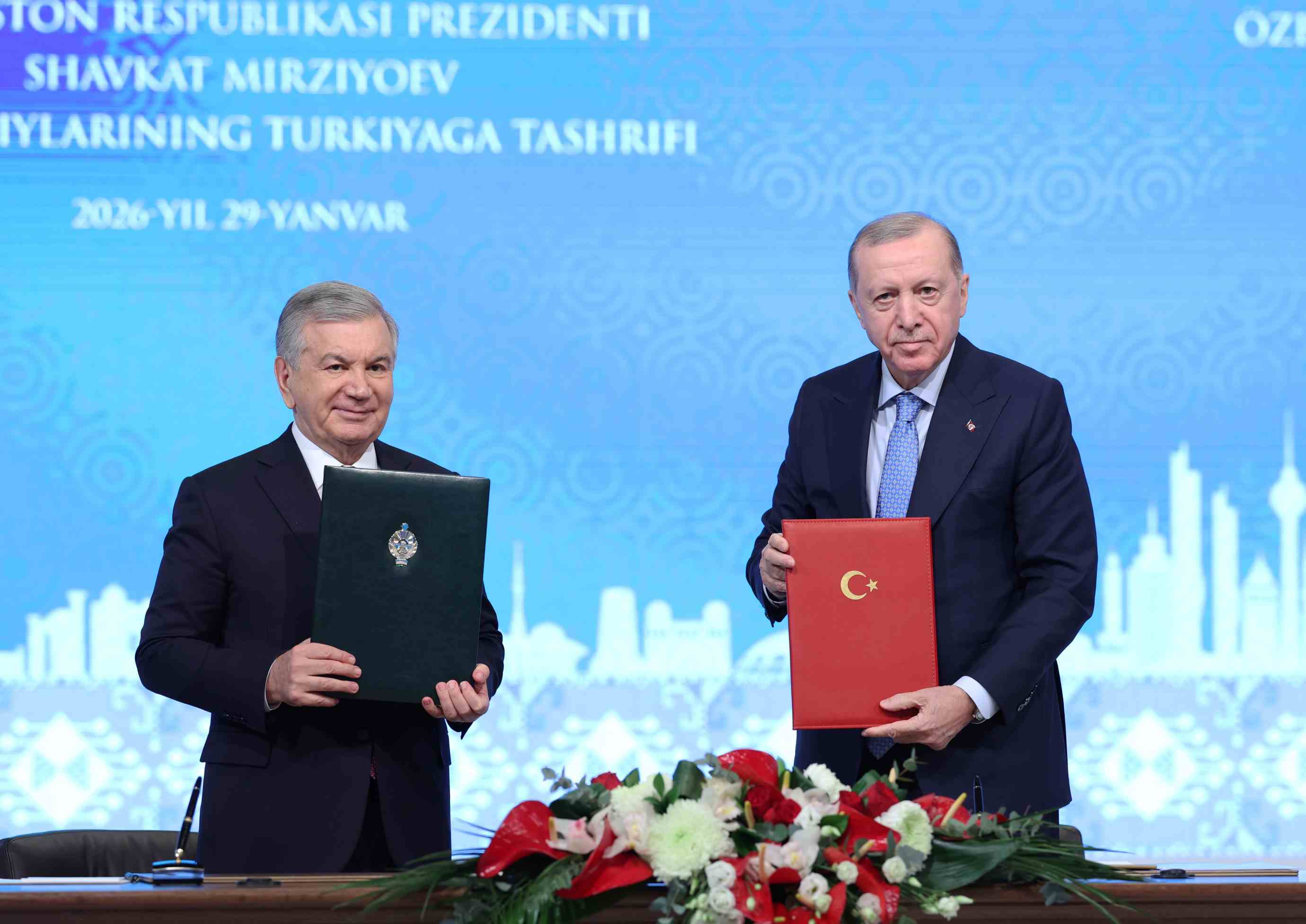 Erdoğan ve Mirziyoyev, Türkiye-Özbekistan Yüksek Düzeyli Stratejik İşbirliği Konseyi’nin 4’üncü toplantısına katıldı. Toplantı sonrası iki ülke arasında kapsamlı stratejik ortaklık ilişkilerini güçlendiren çok sayıda anlaşma imzalandı.