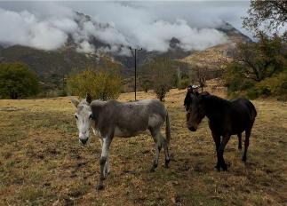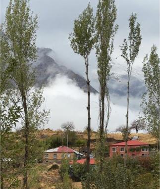 Bazı bölgelerde dağların zirvesinden süzülen bulutlar, karla birleşerek doğanın tüm güzelliklerini tek karede buluşturdu. Eteklerde otlayan atlar ve sis bulutlarının arasında kalan köy evleri, manzarayı daha da etkileyici hale getirdi.