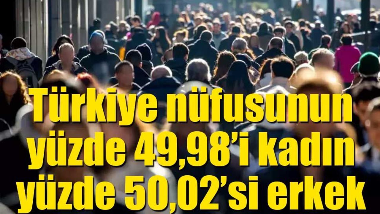 Adrese Dayalı Nüfus Kayıt Sistemi (ADNKS) sonuçlarına göre 31 Aralık 2025 itibarıyla kadın nüfus 43 milyon 32 bin 734, erkek nüfus ise 43 milyon 59 bin 434 kişi oldu. Böylece toplam nüfusun yüzde 49,98’ini kadınlar, yüzde 50,02’sini erkekler oluşturdu.
