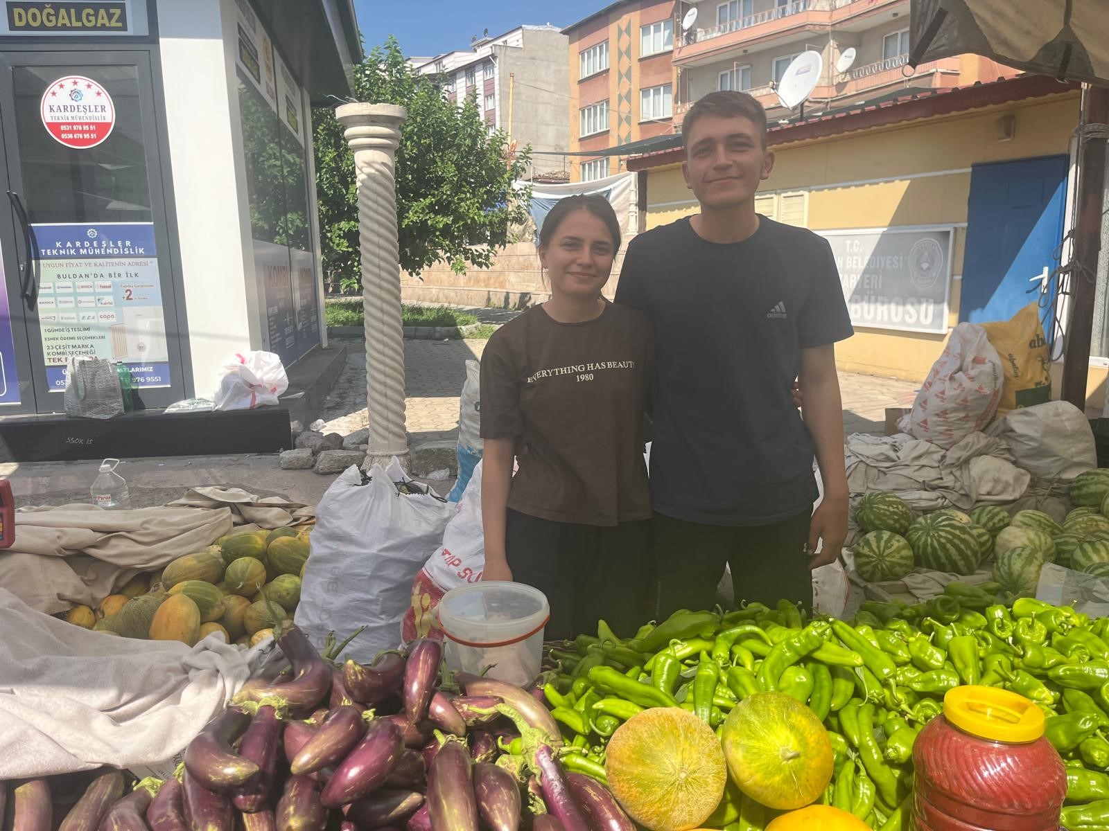 Matematik öğretmenliği bölümünden bu yıl mezun olan Ayşe Nur Onat’ta atama beklediğini dile getirerek "Boş durmamak için tarlada üretim yapıyorum. Öğrencilik hayatında da çiftçilik yapıp harçlığımı çıkarıyordum. Hem hayvanlarımız var hem de tarlamız var. Tarlamızda acı, tatlı biber, kapya biber, kavun, karpuz, patlıcan, kabak yetiştiriyoruz. Çapalamasını yapıyoruz. Sulamasını yapıyoruz. İlaçlamasında yardım ediyoruz. Otlarını yoluyoruz. Bu şekilde aileme üretimde yardım ediyorum. Aileme elimden geldiğince yardım ediyorum. Onlarda tarlada çok yoruluyorlar. Ben ve kardeşim ailemize destek oluyoruz. Ürettiğimiz sebze ve meyveleri çarşamba ve perşembe günleri kardeşimle birlikte Buldan’da satıyoruz" diye konuştu.