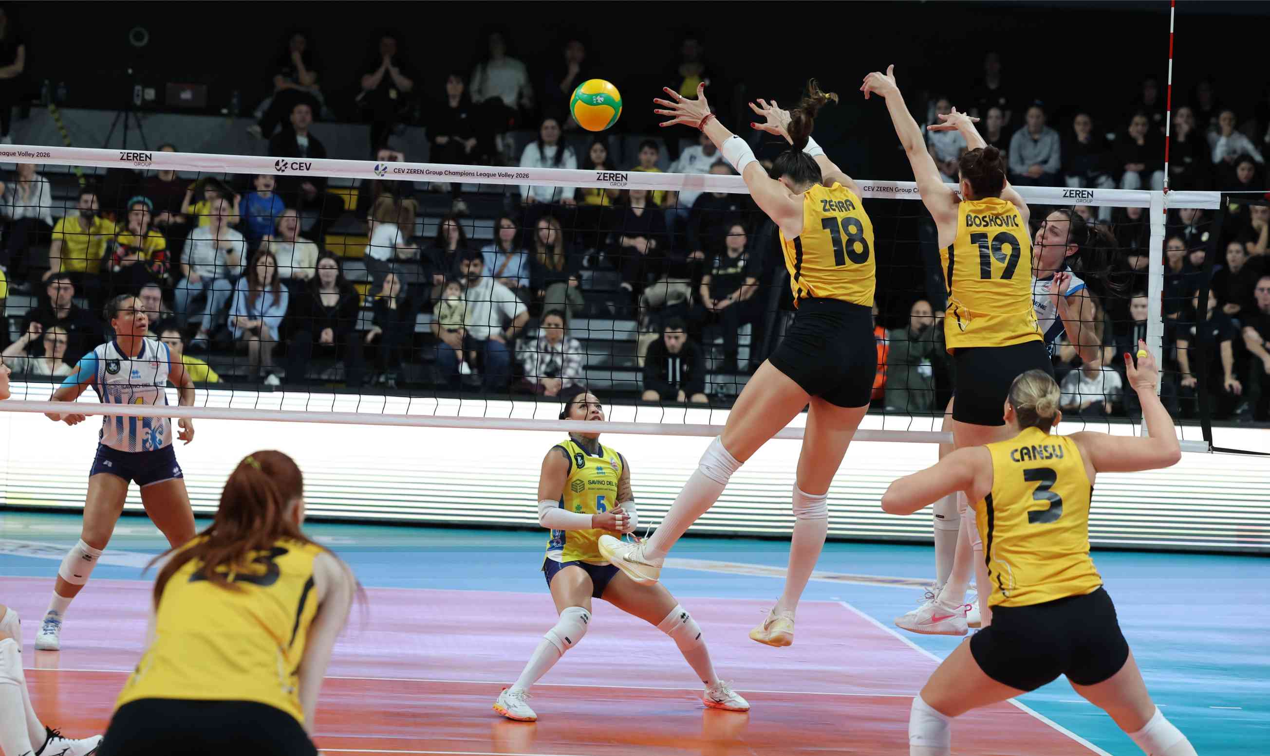 Gruptaki 6. ve son maçında Savino Del Bene Scandicci ile VakıfBank Spor Sarayı’nda karşılaşan sarı siyahlılar, 2-0 geriye düştüğü maçta kusursuz bir geri dönüşe imza atarak rakibini 3-2 mağlup etti. VakıfBank’ta Marina Markova 32, Tijana Boskovic 22 sayı sayıyla çift haneli skor katkısı verdi. Kaptan Zehra Güneş 17 sayının yanı sıra 8 sayıyla rakibine duvar ördü ve karşılaşmanın en değerli oyuncusu seçildi.