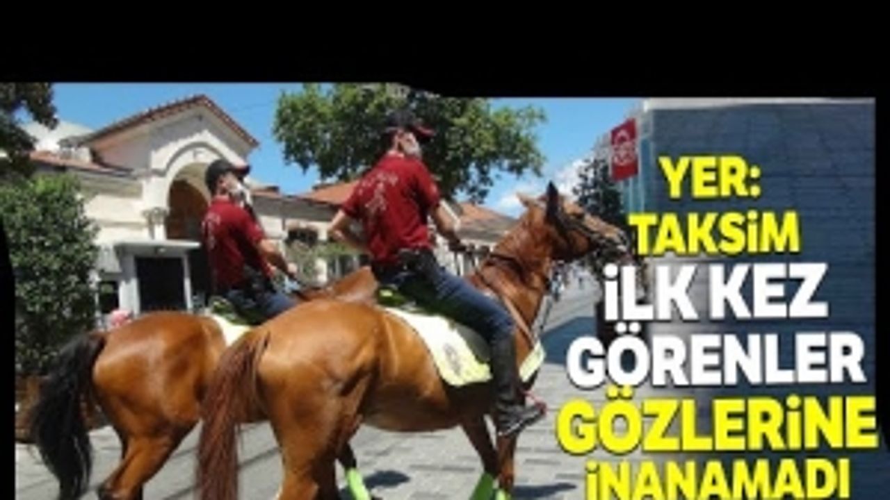 Atlı Polis birlikleri Taksim ve İstiklal Caddesi’nde devriye gezdi. Atlı Polisler vatandaştan yoğun ilgi gördü.