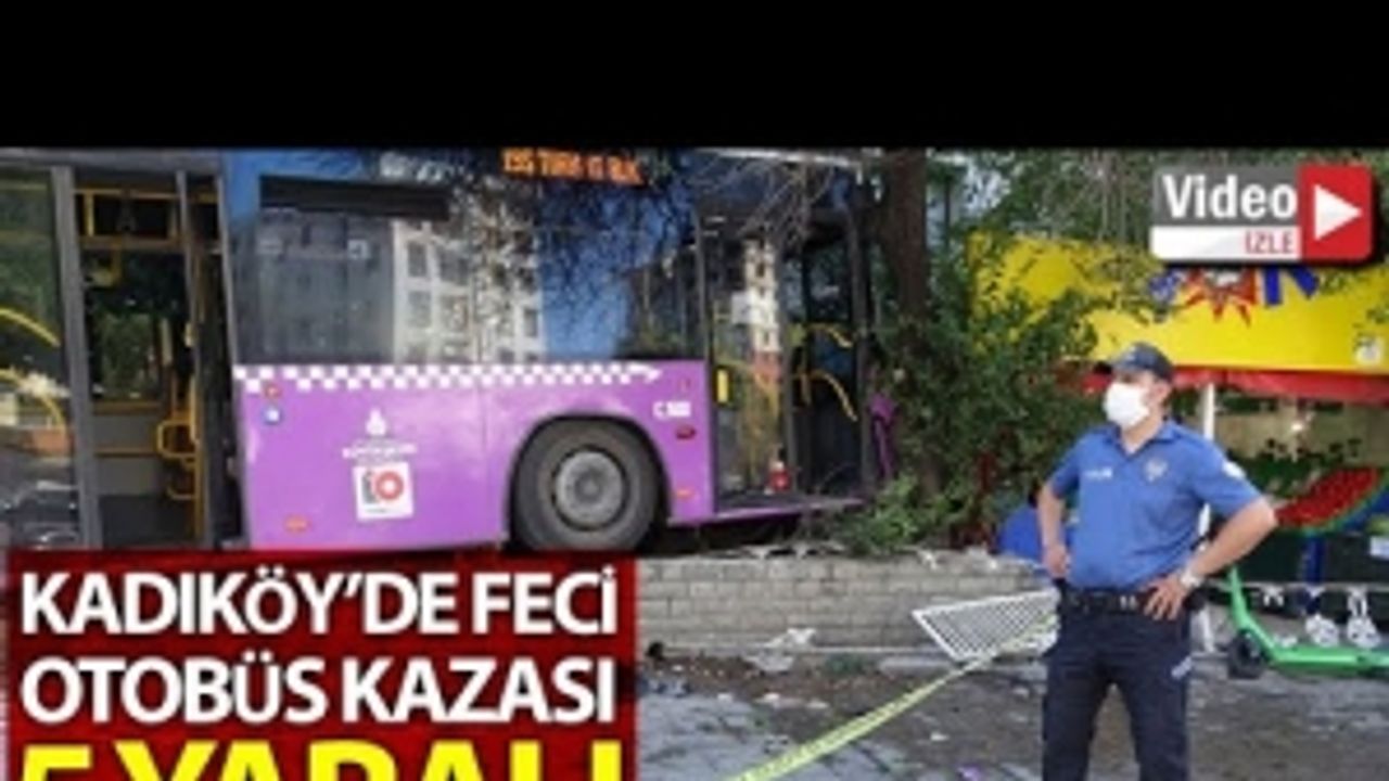 Kadıköy’de İstanbul A.Ş. ait otobüs kontrolden çıkarak Müjdat Gezen Sanat Merkezi’nin bahçesine daldı. Kaza 5 kişi yaralanırken kaza anı güvenlik kamerasına yansıdı.