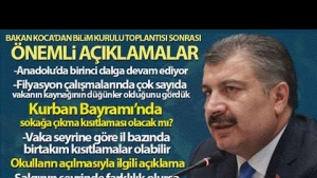 Koronavirüs Bilim Kurulu saat 17.00’de video konferans yöntemiyle toplandı. Toplantının ardından Sağlık Bakanı Dr. Fahrettin Koca önemli açıklamalarda bulundu.