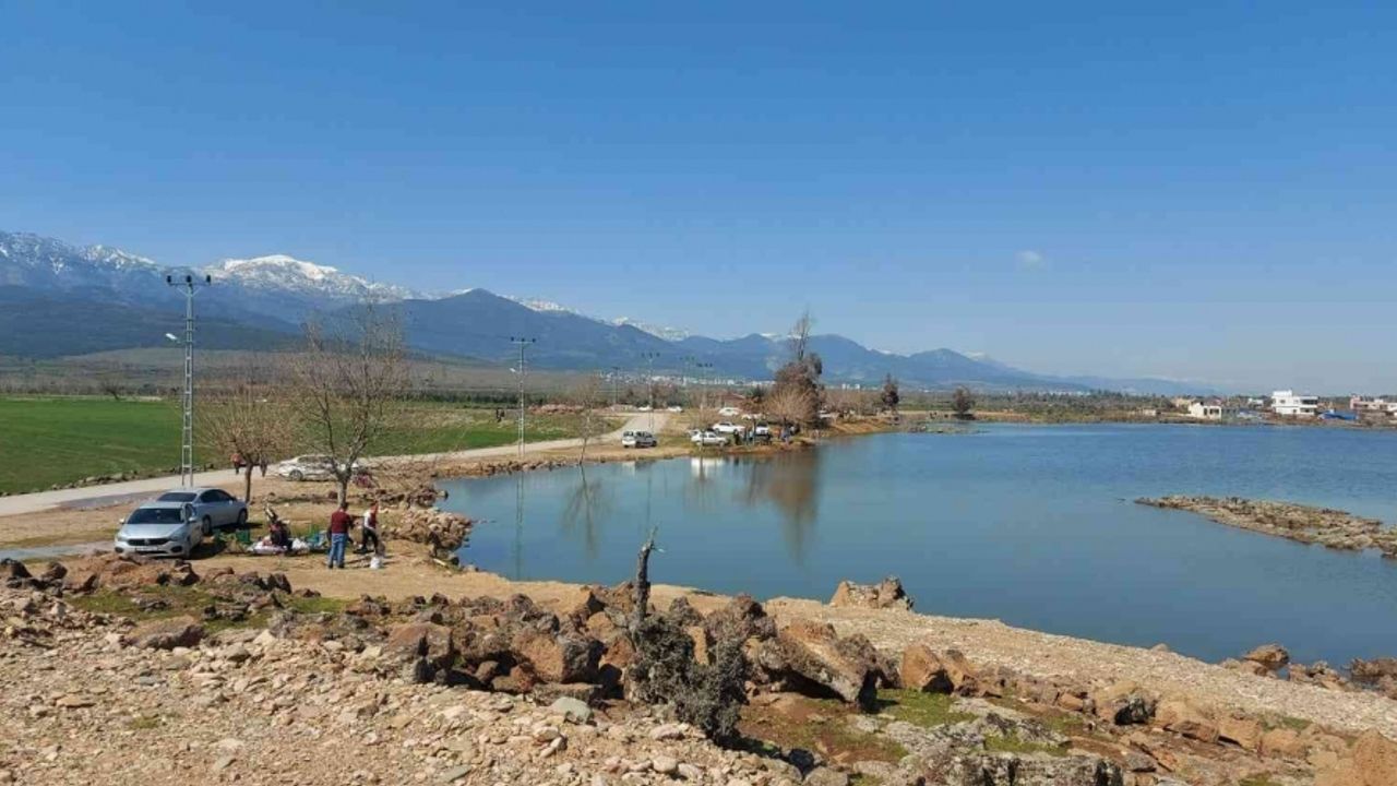 Hatay’ın Hassa ilçesindeki volkanik Haydarlar Gölü, hafta sonları piknikçilerin akınına uğruyor.