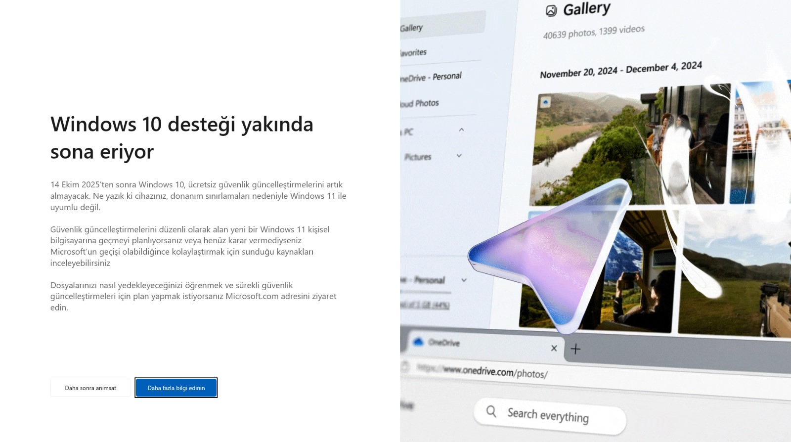 Microsoft, Windows 10’a 14 Ekim 2025 sonrası güvenlik ve teknik destek vermeyecek. Bu durum, cihazınızın çalışmasını durdurmasa da büyük güvenlik riskleri oluşturabilir.