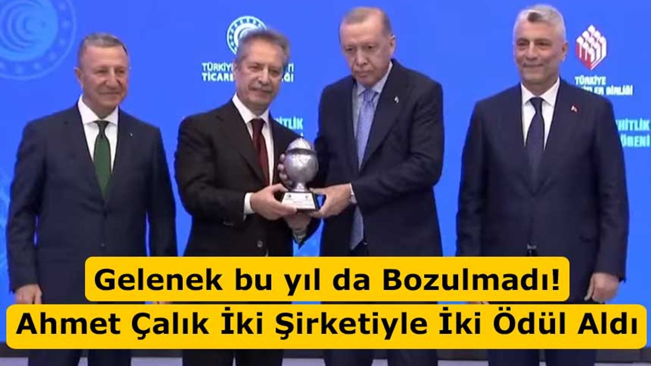 Bu güçlü tablo içinde Çalık Enerji ve GAP İnşaat ile ödüle layık görülen Ahmet Çalık, geçtiğimiz yılın ardından bu yıl da iki ayrı firmasıyla çifte ödül alan tek iş insanı olarak öne çıktı. Cumhurbaşkanı Erdoğan’ın elinden ödüllerini alan Ahmet Çalık, Türk müteahhitlik sektörünün küresel başarısında özel sektörün rolüne dikkat çeken isimler arasında yer aldı.