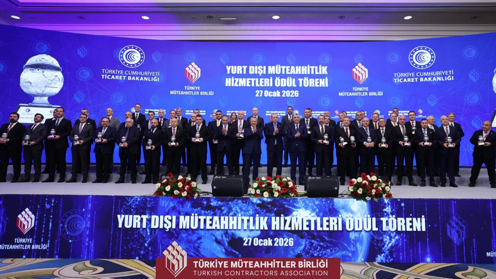 Cumhurbaşkanı Erdoğan’ın, Türk müteahhitlerinin 138 ülkede 557 milyar dolarlık iş hacmine ulaştığını açıkladığı törende, Çalık Enerji ve GAP İnşaat ile ödüle layık görülen Ahmet Çalık, üst üste ikinci kez çifte ödül aldı.